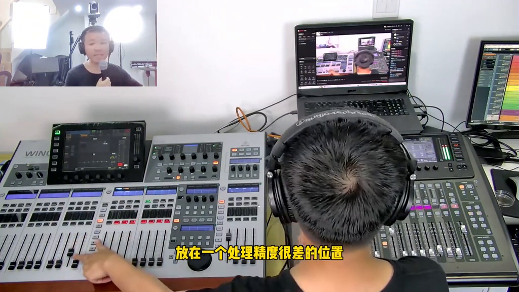 如果话筒太大声了,我会选择trim,用trim衰减。但是有些人根本不知道trim怎么用。甚至有些人不知道M32的trim在哪里。大多数人会选择的处理方案是什么?要么推子就拉低一点,拉得很低。因为再往上推声音太大了受不了了。选择把推子拉下去,放在处理精度很差的位置。