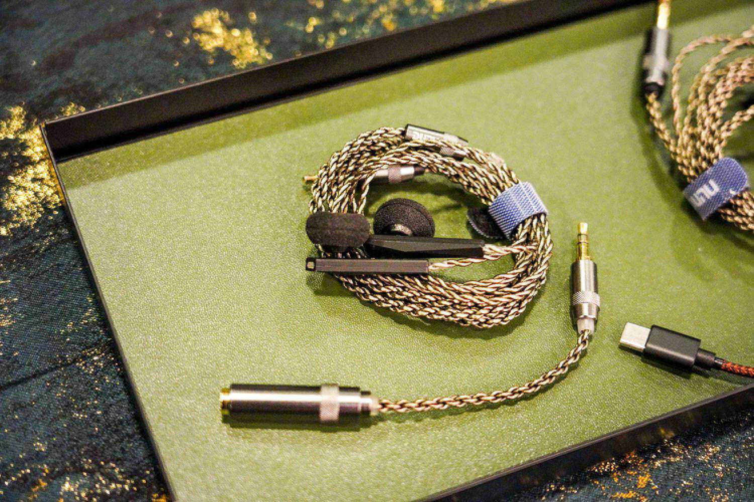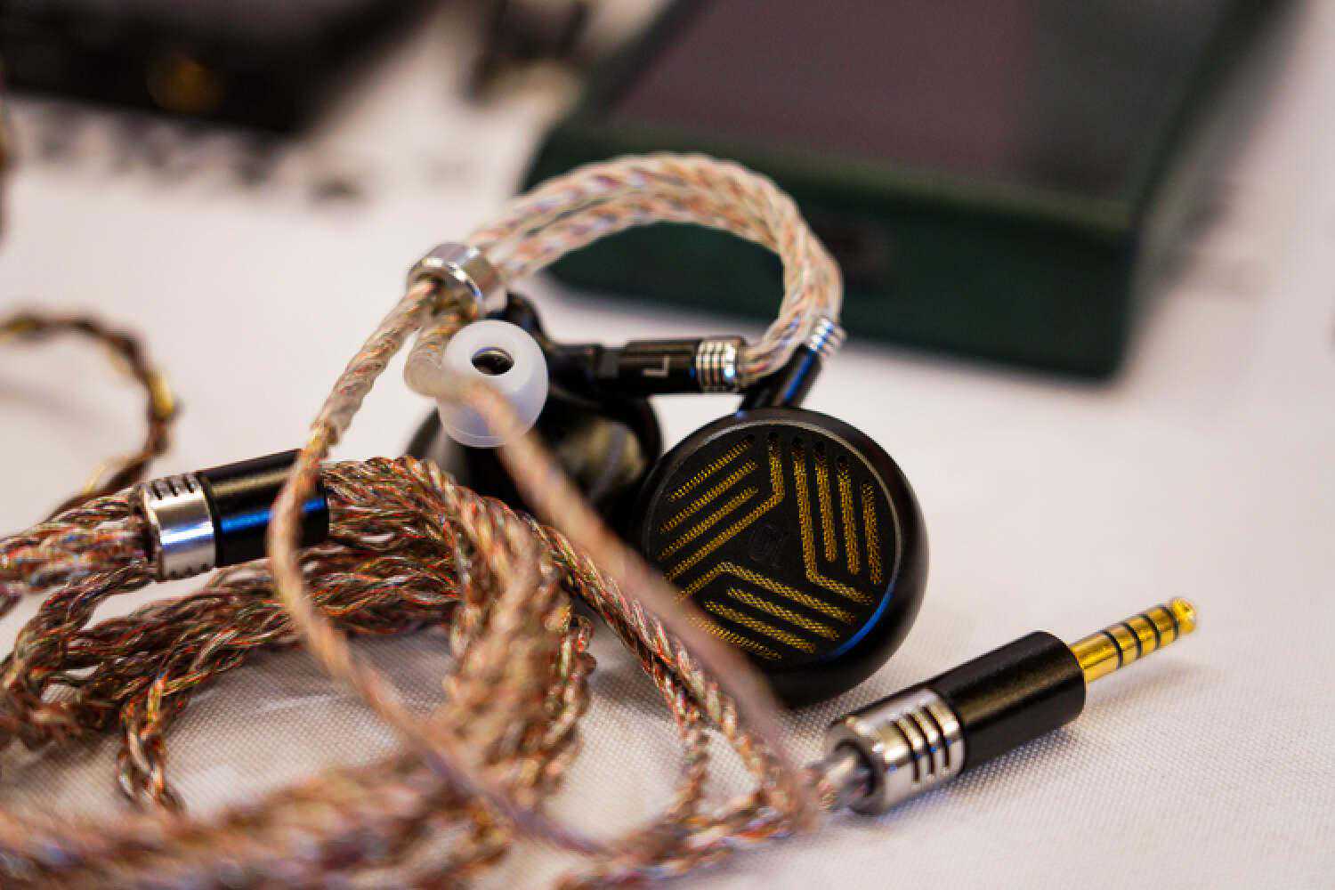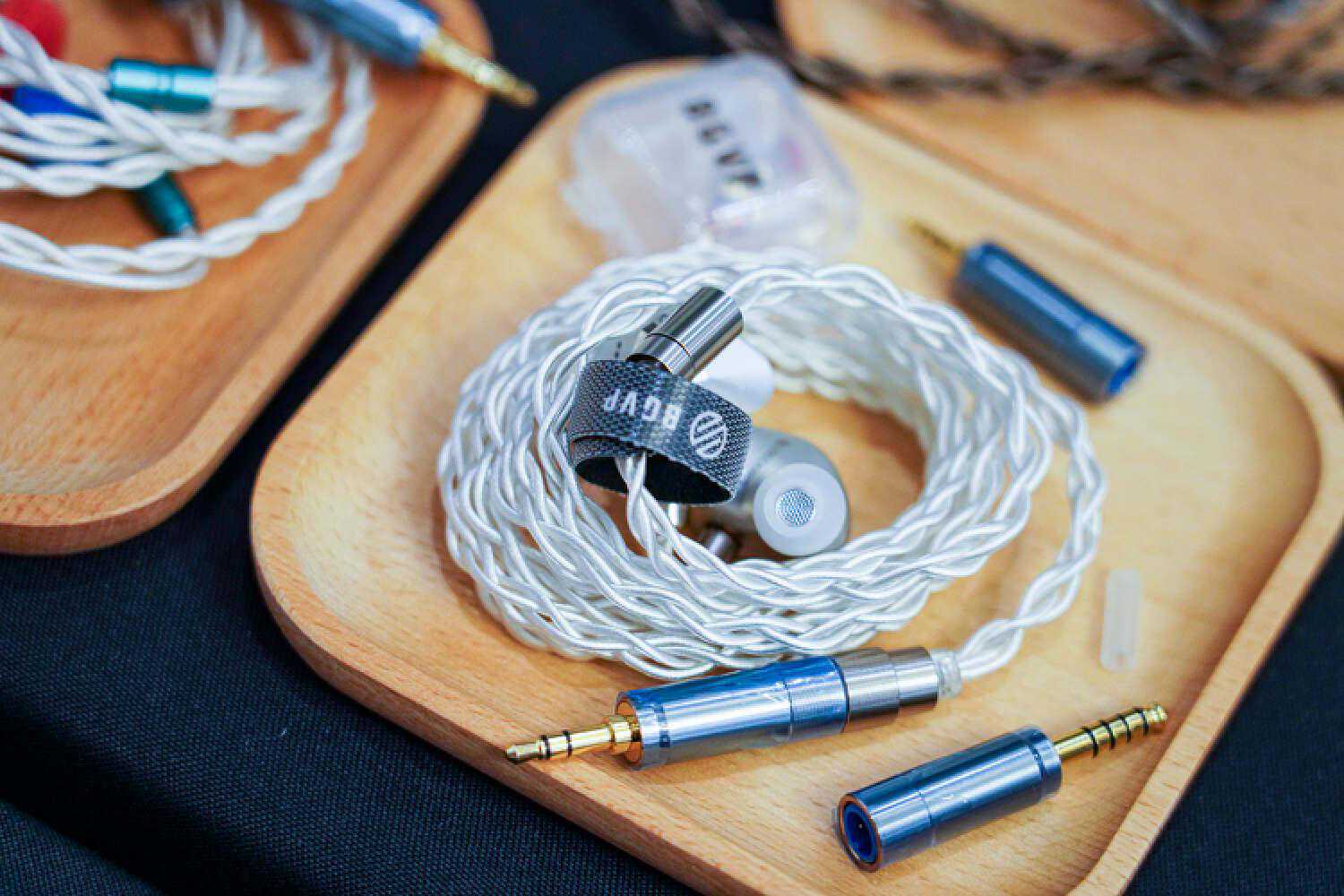 万隆这次带来了一个新的超旗舰线材,记得没错应该是单晶银和金银合金材料,就是图中这个没有接插件的工程样线,是我目前心目中耳塞线素质的T0了,除了低频不算很出彩以外,信息量、结像、空间感、透明度、以及非常华丽但控制力很好的高频延展度,搭配VKRP这种本身高频很出彩的塞子并没有起到适得其反的效果,而是锦上添花的那种好听,而且它目前在高频信息量的表达方面在耳塞线里暂时是独一档,售价应该会在2W+。