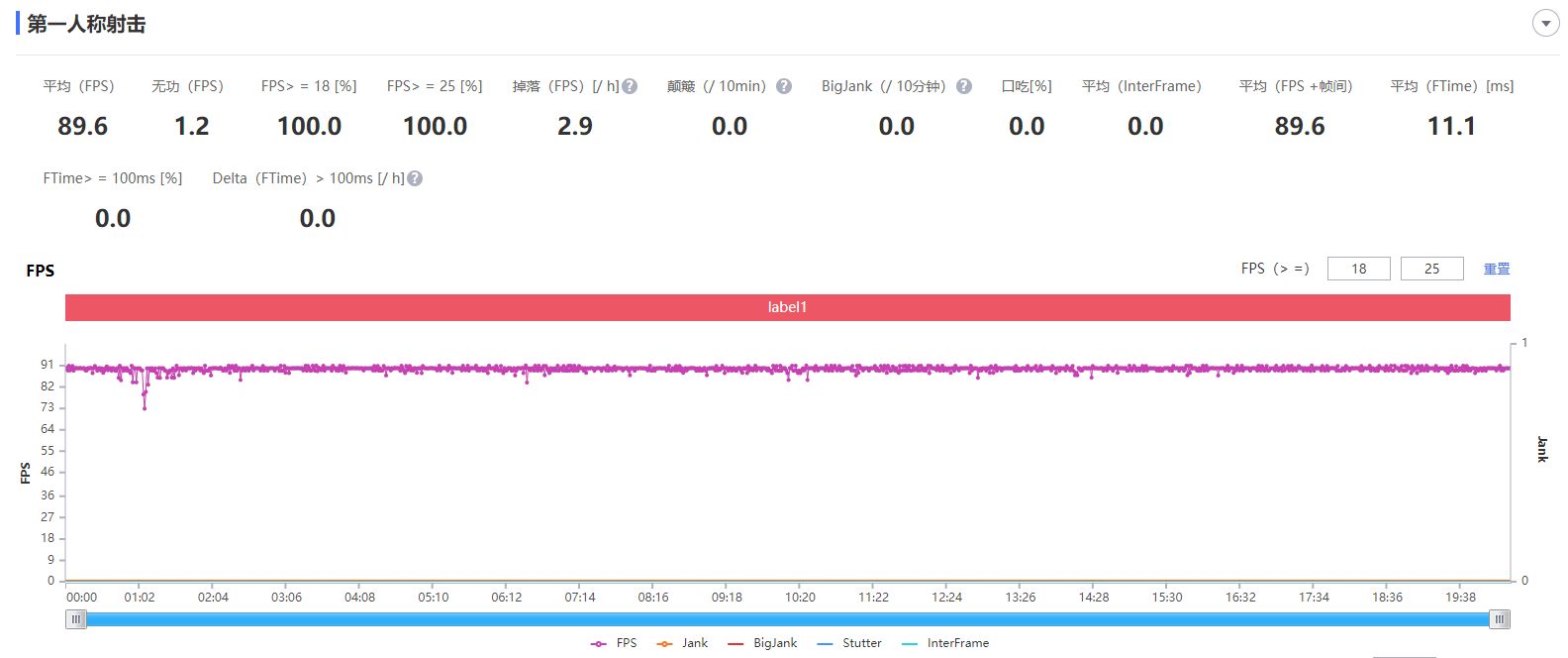 考虑到用户基数,我还是选择以和平精英这款游戏来作为测试环境。从上图中可以清楚看到,GPU设置选项调节至高质量、流畅+90帧画质条件下持续玩20分钟,RedmiK40游戏增强版平均帧数为89.6帧,并且帧数波动非常小,运行王者荣耀也同样没啥压力。
