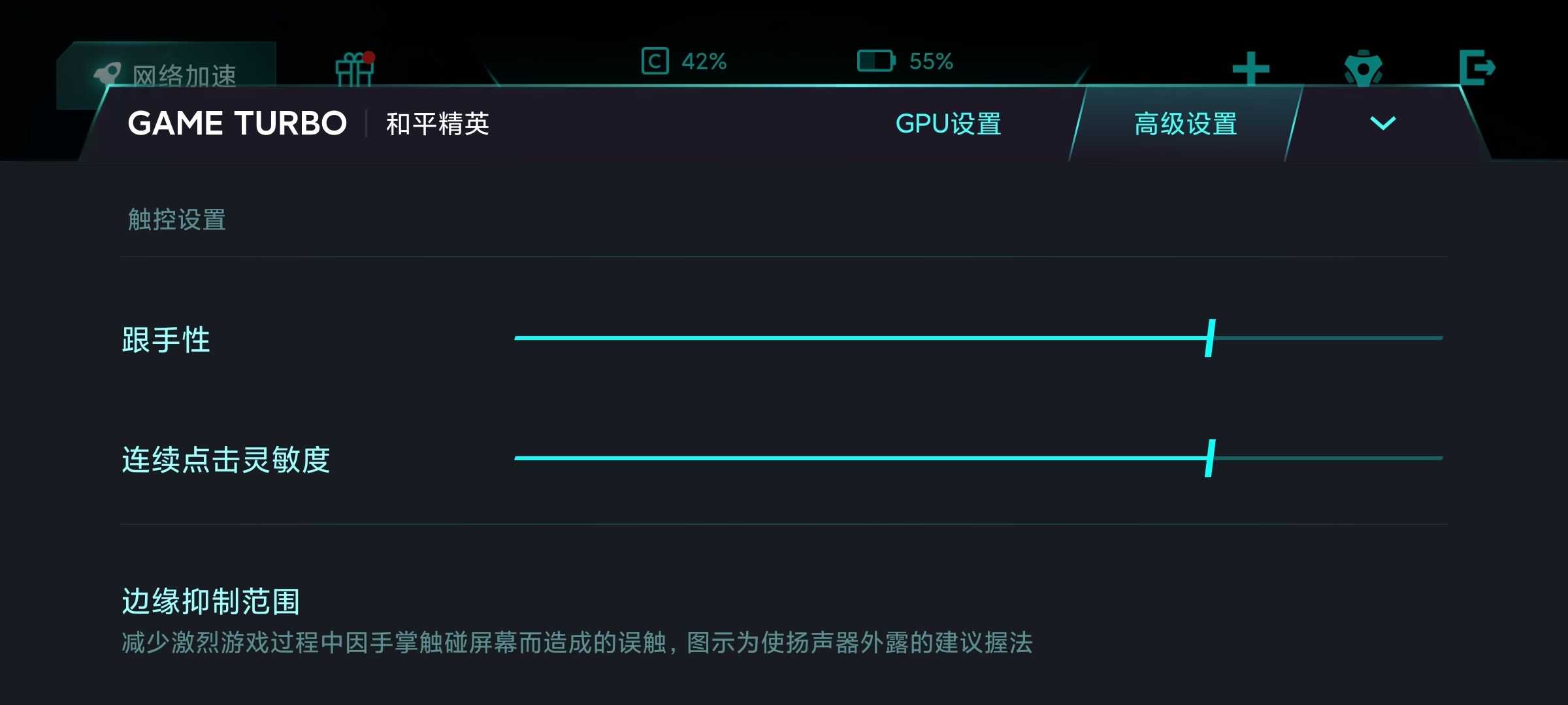 而在高级菜单中,Redmi也开放了触控、边缘抑制范围、屏幕显示、4D震感设置选项,从视觉到触感,再到操控性,几乎所有关乎游戏体验的因素,你都拥有主动选择的权利,为玩家打造个性化游戏提供了足够的支持。
