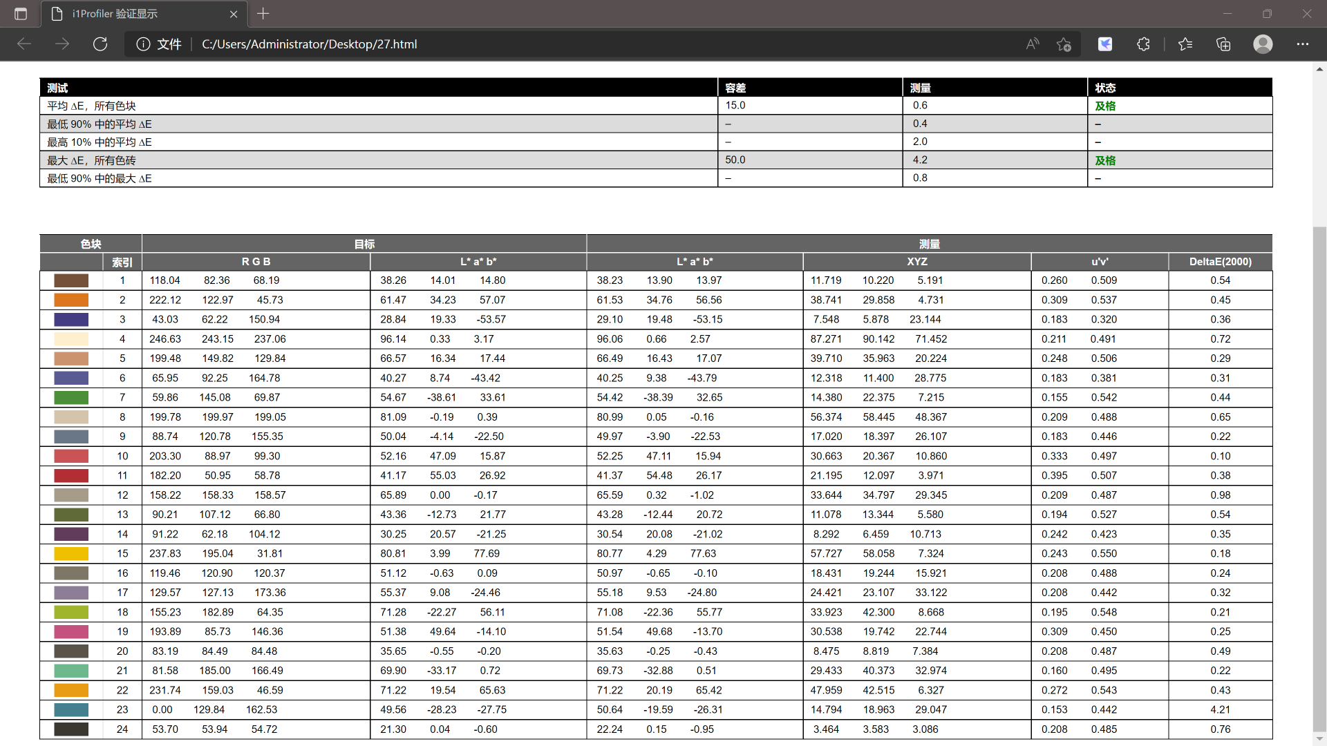 这里要解释一个专业名称色差,色差值:表示颜色的差别大小,用ΔE表示,这图是我用专业的校色仪测其他显示器的,但这里大家可以注意到23号色,就是接近上图的主调色,这个色在很多显示器甚至上图这个专业显示器,其他数值都小于1,偏偏这个色直接4.21,所以显示器上都并不好显示,这个色差基本是各种颜色中最大的。