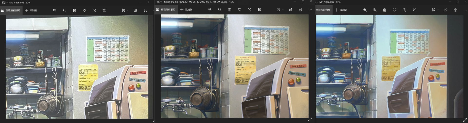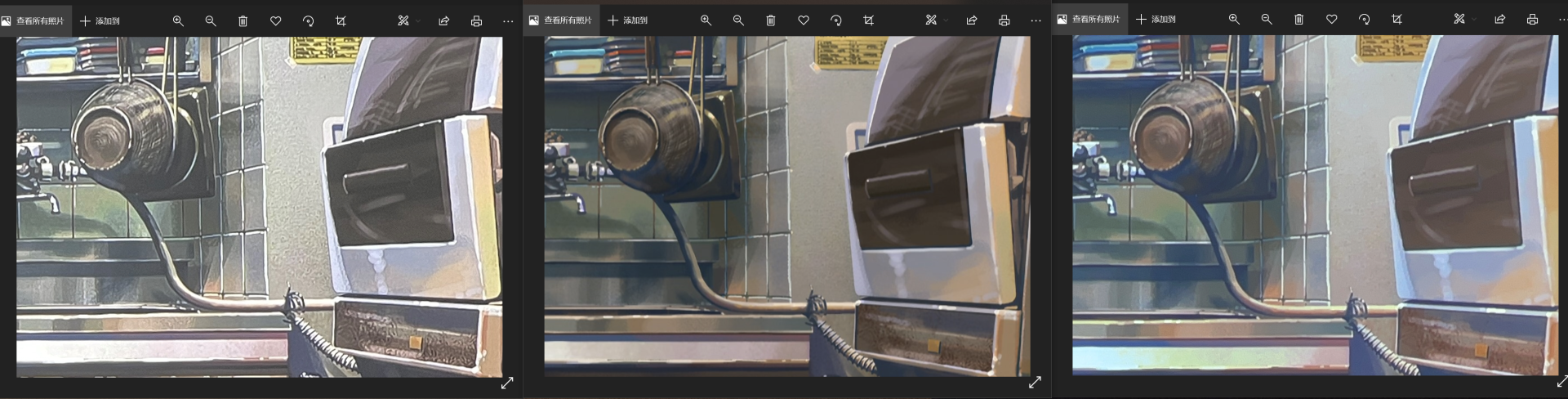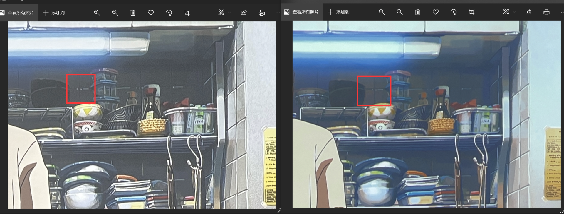 好了对比完了,这放大数倍后细节效果自然能体现差距,但话说回来,我也一直劝说的是,别拿放大镜看,又不是要玩连连看,也不是来锻炼视力的。