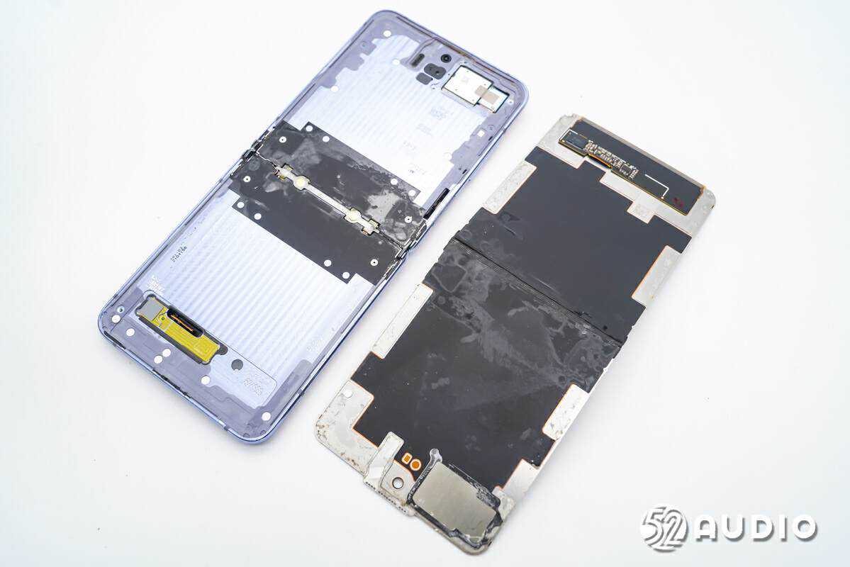 盖板内侧结构一览,贴有石墨散热贴纸。