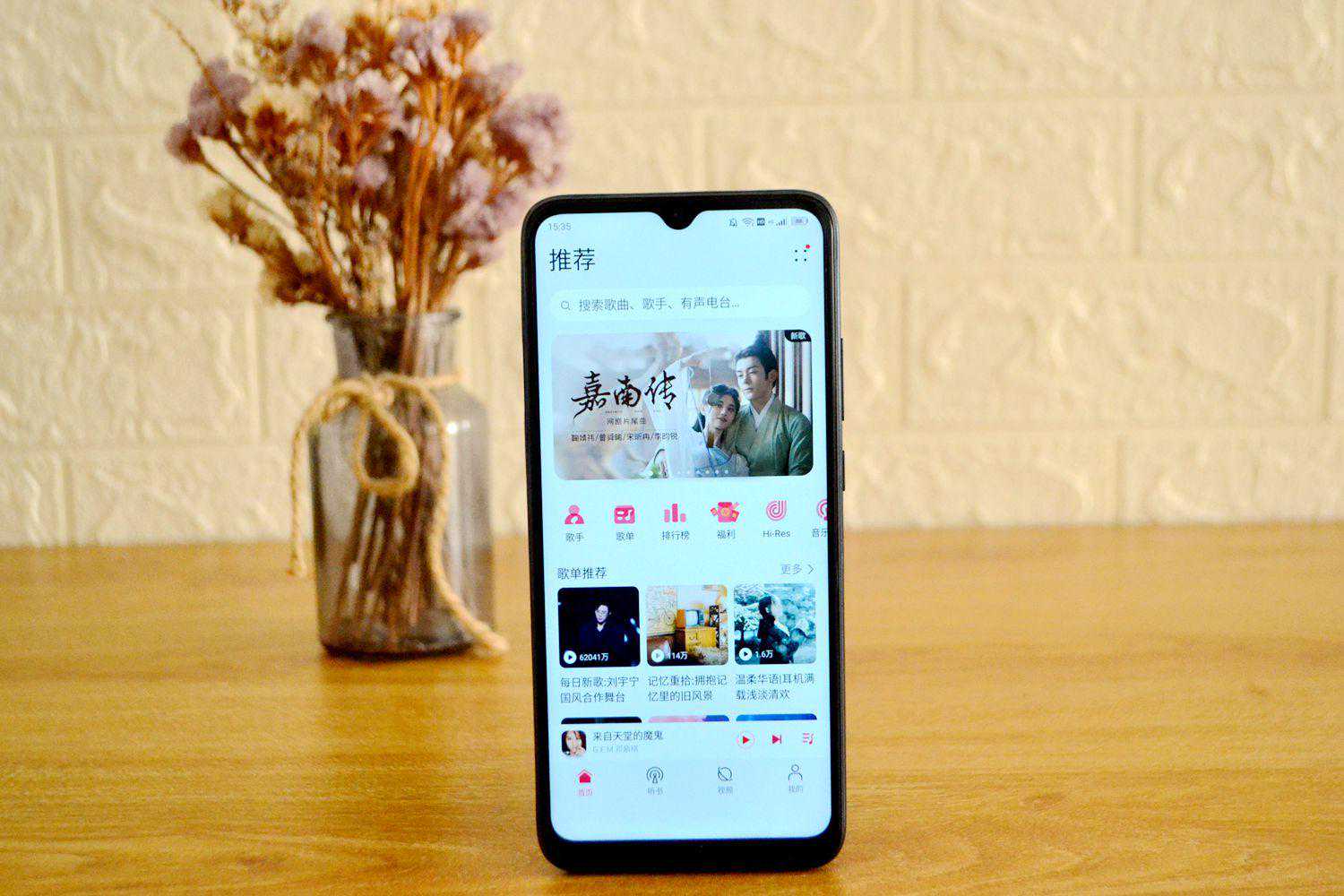 屏幕方面,正面采用了一块6.53英寸的LCD的屏幕,全面屏采用的是水滴屏的设计方案,分辨率为720P。底边黑边相对旗舰机来说还是蛮宽的,屏占比一般,符合中端机的水准。