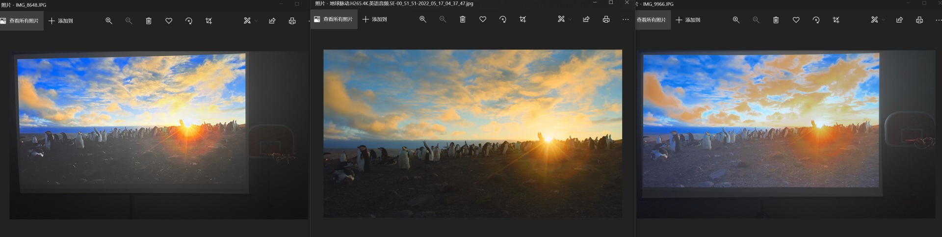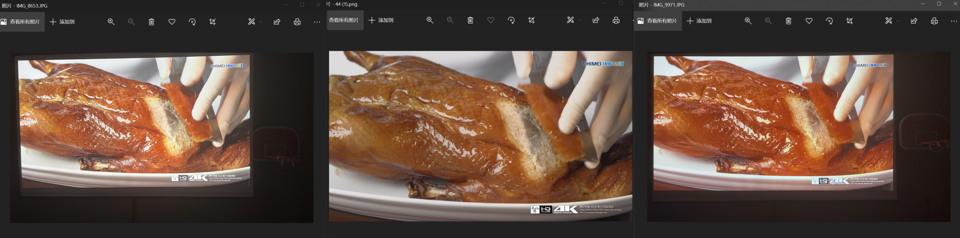 左边是当贝X3pro中间是原图的右边是优派K701我都是电脑上截图打开,以下都维持这样。