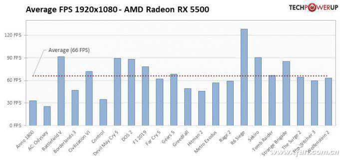 和GTX1650、GTX1650Super的实测帧速相比,RX5500超过GTX1650完全没问题,不过还略低于GTX1650Super的水平。与它性能最接近的是RX580、GTX10606GB两块“老”显卡,目前AMD已经宣布RX5500上市后会把RX580/590退市,它的定位就很明显了。