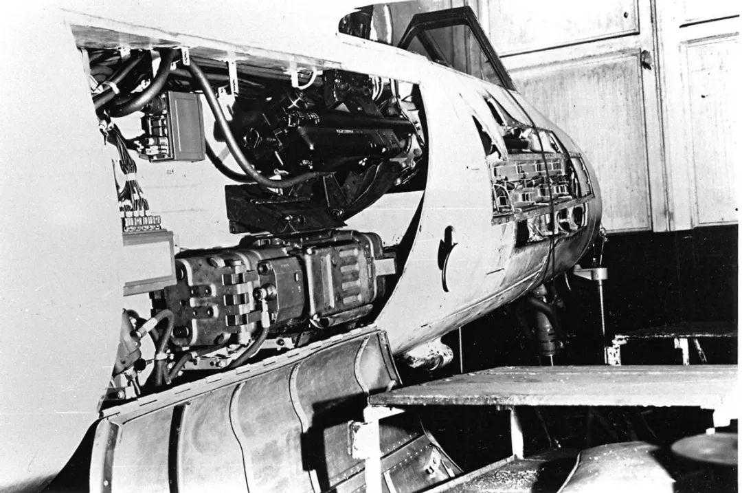 图10注:Ta154V3的武器配置,从后膛可以明显看出。上方机炮是MG151,下方机炮是MK108。测试表明MK108的后坐力对于木制机身有严重损坏,所以实际使用中都换成MG151机炮