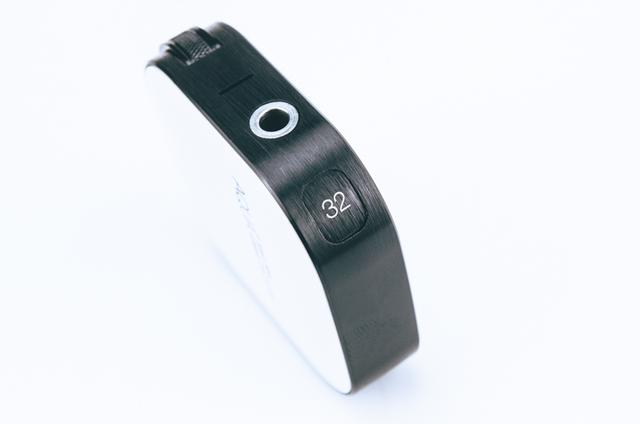 在表面印有“32”字样的按键为开关机键,同时它还兼具着一键升频的功能,能够进一步提升音质体验。从图片中可以看到,饼干在边框上并没有采用抛光的工艺,而是带有拉丝处理,这个设计上的细节让产品的品质感与档次瞬间提升。