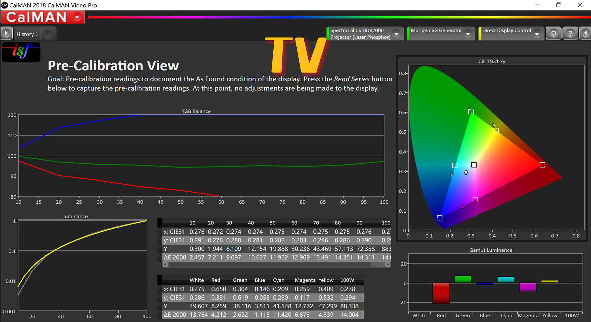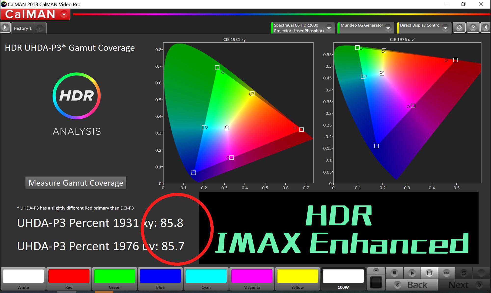 同时XW5000的色彩校正也非常好用,调整参数,数据变化很线性很可控。不像明基HT6550手动调试色彩落点就乱跑。并且,最后我随便调了一下,平均色彩失真就降到了1以内,达到了0.94。