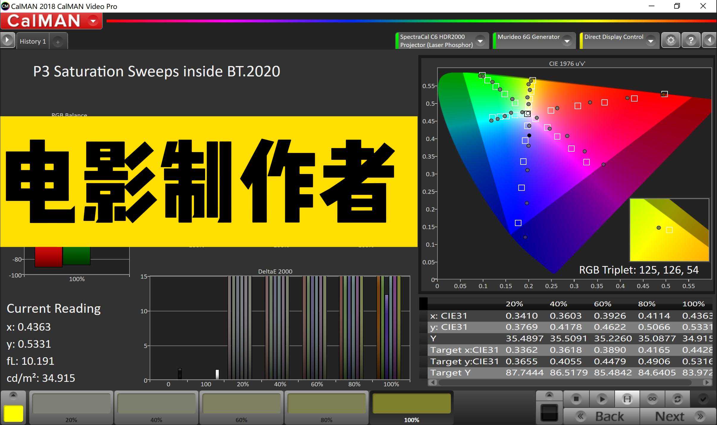 因为UHD4K的蓝光电影都是执行的BT2020色域。所以,我测覆盖率,是为了尽量选一个色域最广的模式,再进行进一步调整和使用。