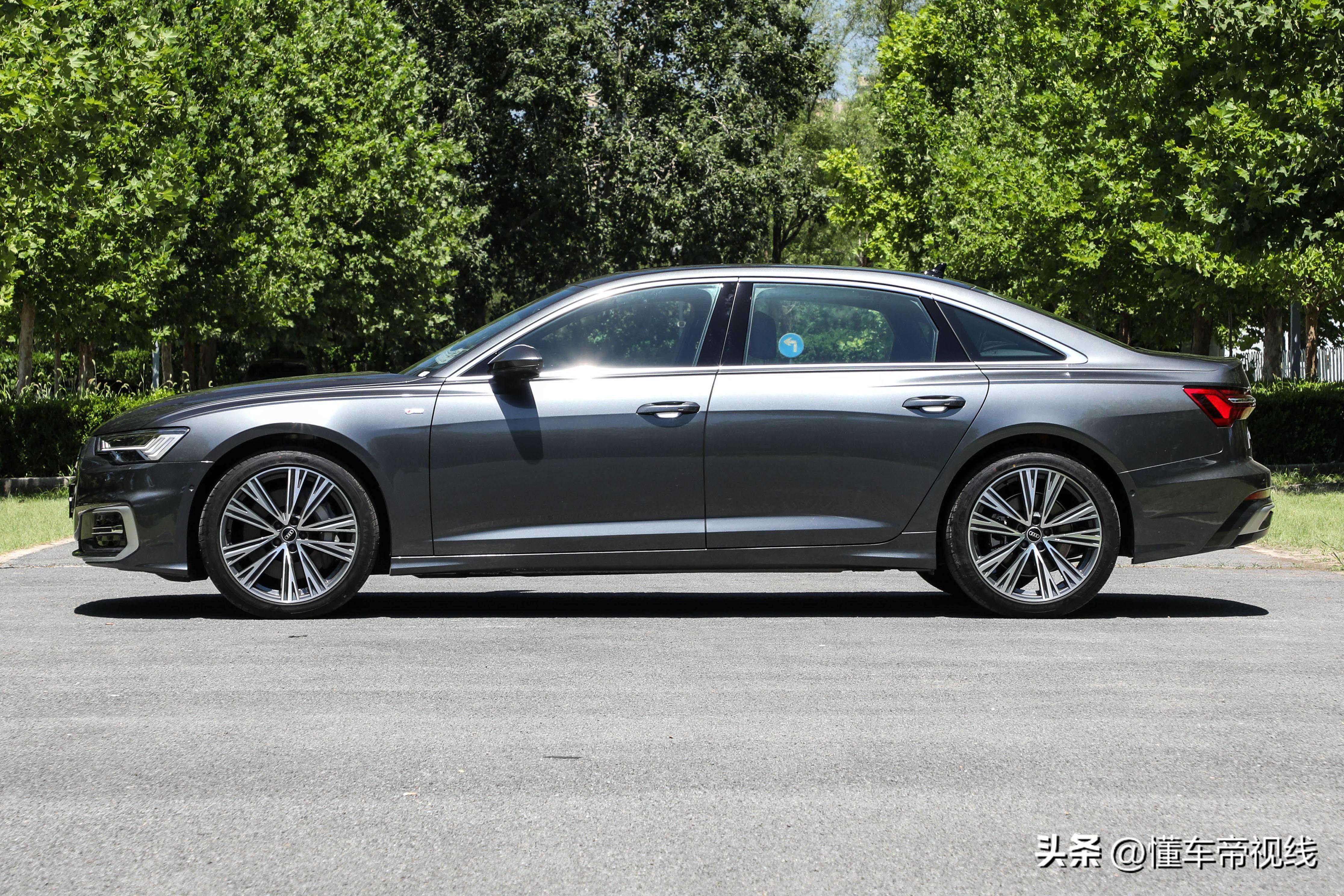 车身侧面两段式的腰线更凸显了A6L修长的车身,虽然拍摄车辆后排并不是隐私玻璃,但是在顶配版本上是有配备。尺寸方面,新款奥迪A6L长宽高分别为5038(5050)/1886/1475毫米,轴距为3024毫米,数据与老款车型保持一致。