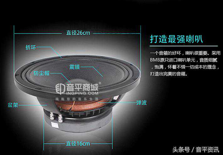 •中高音:9*6cm,尺寸锥型振膜中高音单元X2units