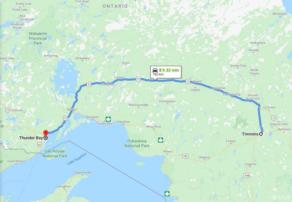 第二天:蒂明斯Timmins,ON–雷湾ThunderBay,ON,行程约700公里