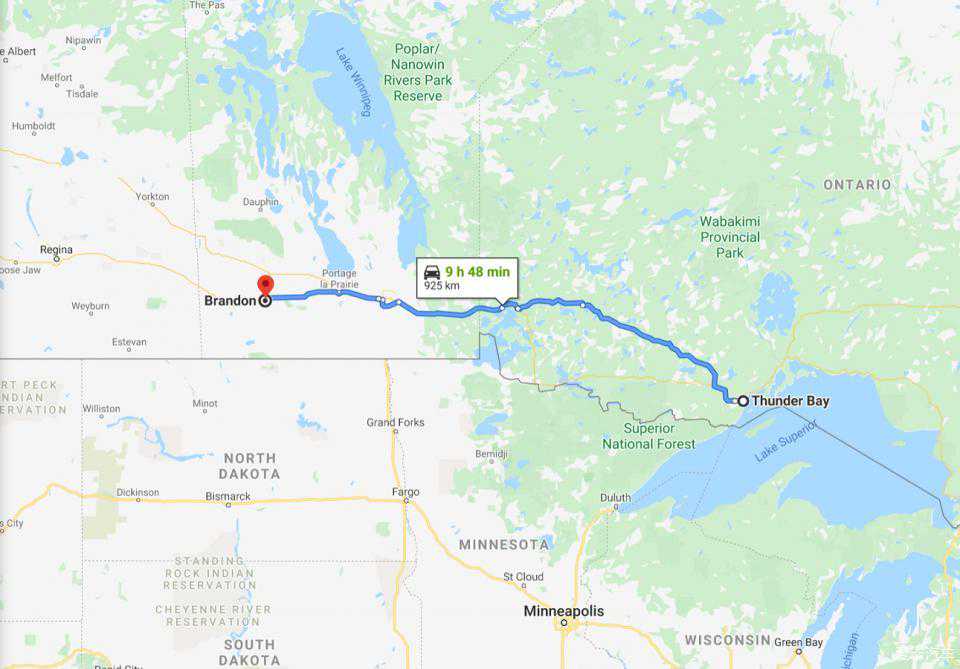第三天:雷湾ThunderBay,ON–布兰登Brandon,MB,行程约900公里。
