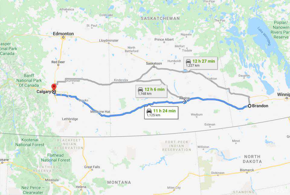 第四天:布兰登Brandon,MB–卡尔加里Calgary,AB行程约1100公里。