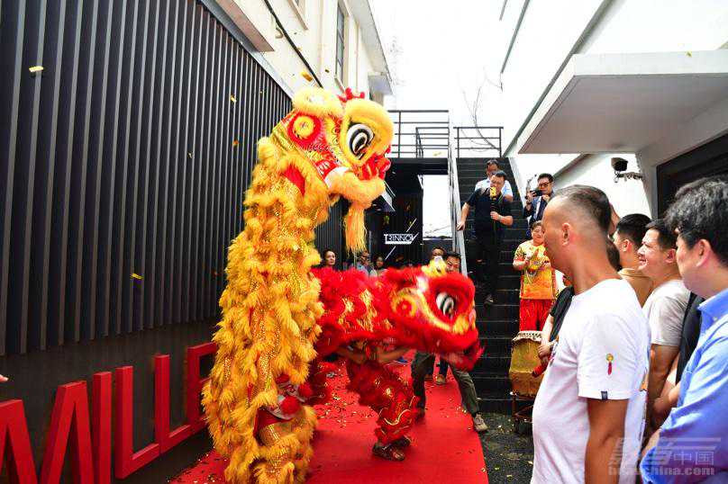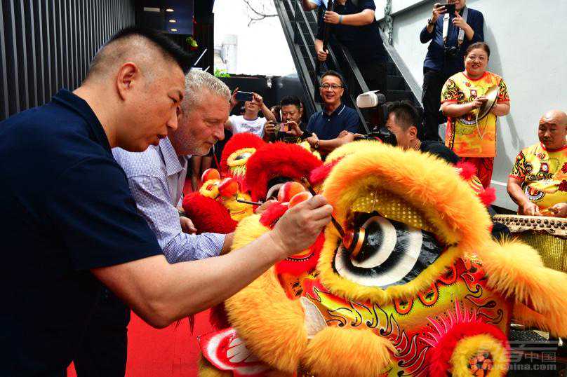 上午10:18,米乐影音董事总经理TonyCheung(张声乐)和MillerKreiselCEOPerBecher在展厅门外进行了醒狮点睛仪式。