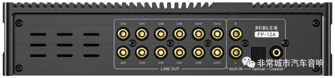 近年来随着发烧友鉴赏品位的不断提升,很多车友改装的音响系统已经逐步晋级为“前后声场双主动分频”,甚至加上中置单元和超低音单元,涉及的信号通道达到了10路-12路甚至更多,很多市面上4路或6路的DSP数字处理器已经不能满足发烧友们的追求,也正因如此,弗莱德顺应市场需求,经过反复的严格测试,首次推出了一款集DSP处理、AB类功放和HIFI音质为一体的专业级12路DSP功放(数字音频处理器)——FP-12A,可以满足各个声道功率推动要求,同时还节省了安装空间和改装预算,是妥妥的发烧神器。