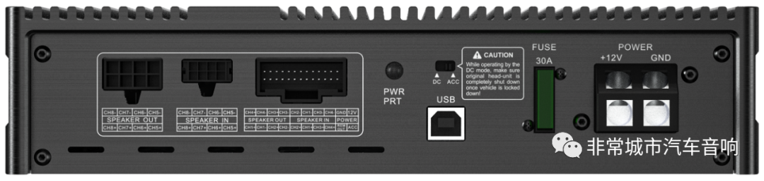 FP-12ADSP功放外观延续了弗莱德以往的设计风格,黑色全铝合金机身,正面印刻着白色的FREUDE和产品型号,简约大气,搭配大面积的散热格栅设计,不仅美观还充分保证了机器的散热性能非常出色,侧面是不惜工本采用的镀金端子,减少了音频信号的传输损耗。247*178*55mm的紧凑体积,与市面上很多12路的DSP相比都要纤巧,可以安装在座椅底下或后备箱,几乎不占用车内空间,安装十分便捷!