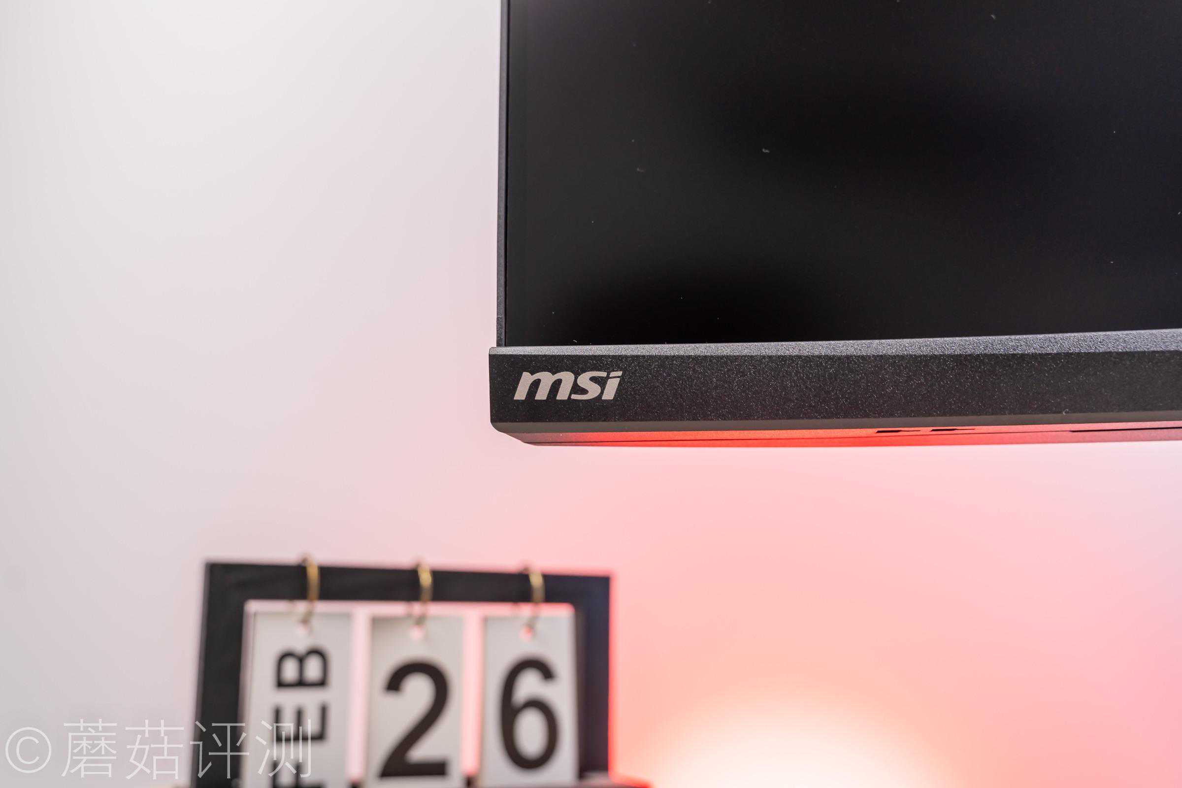 ▼显示器右侧的微星龙盾LOGO也有漂亮的ARGB灯效,效果很漂亮。