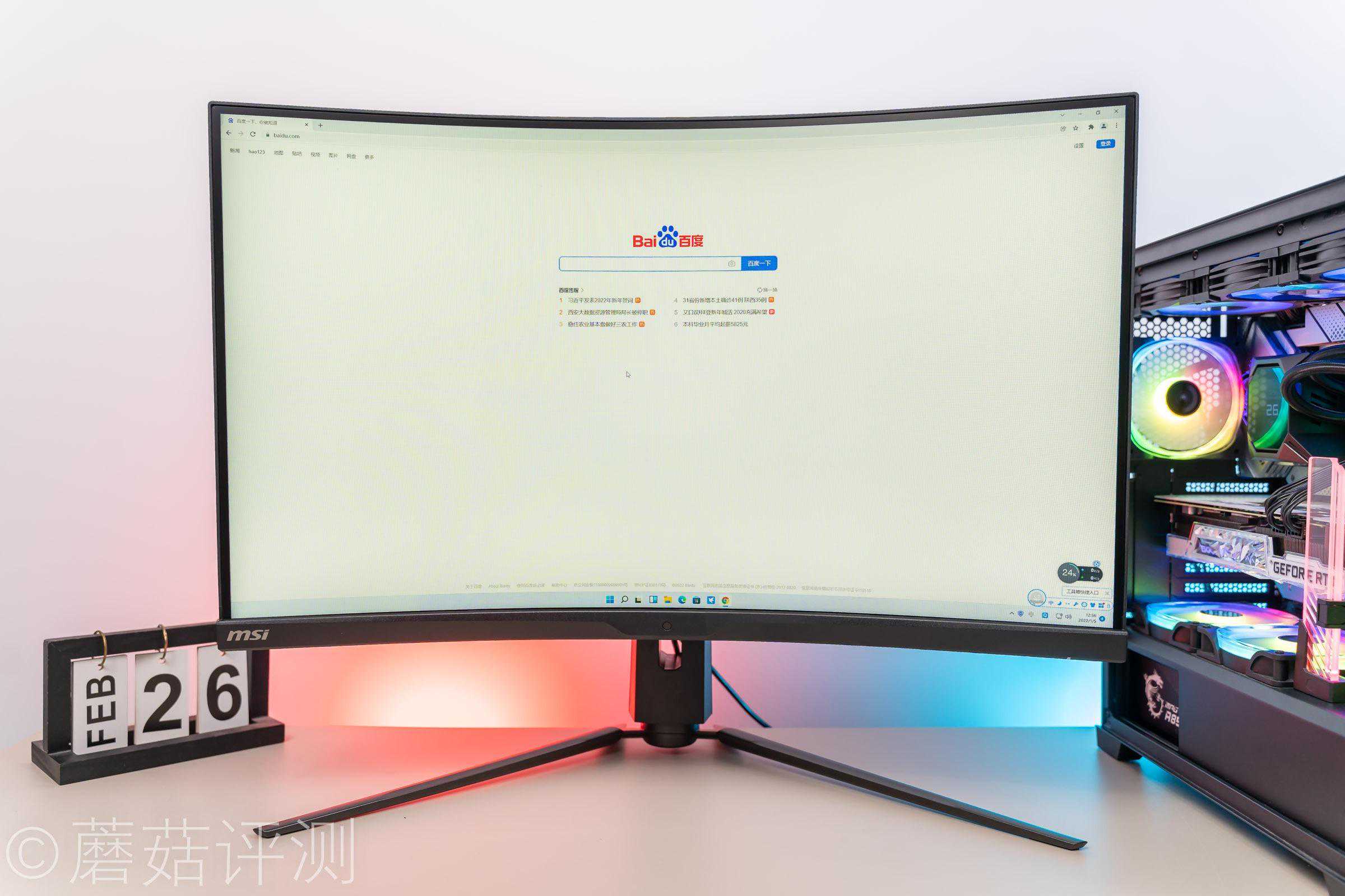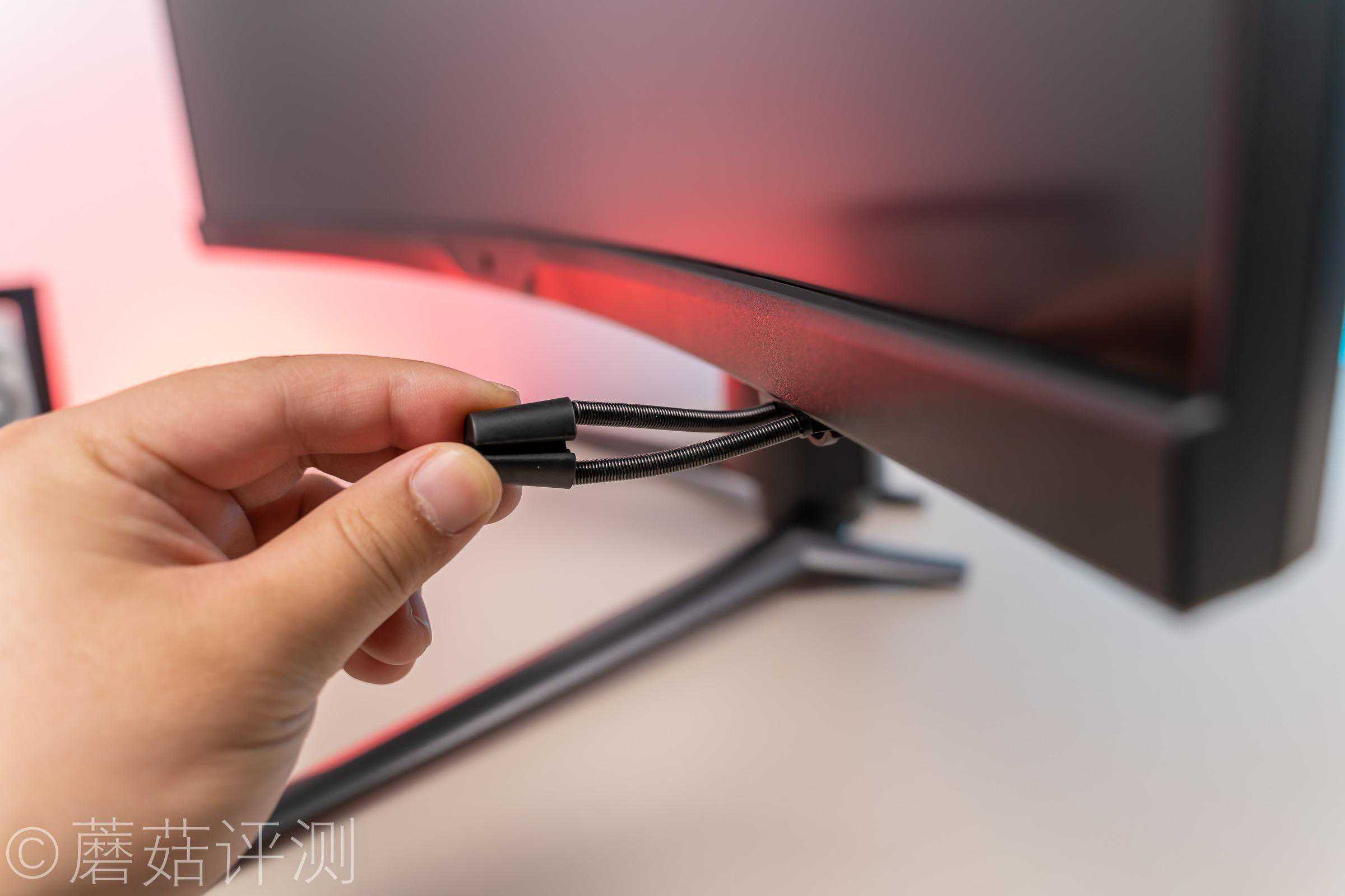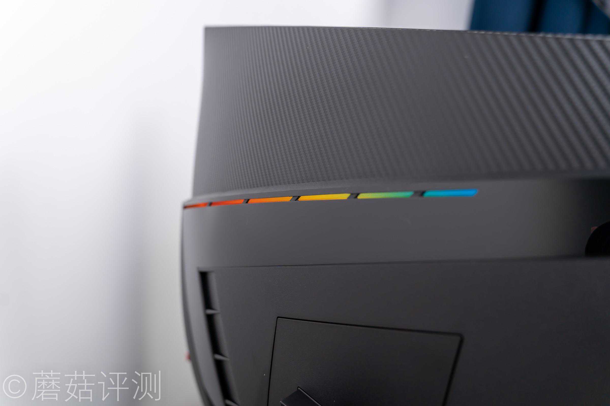 ▼开机之后,显示器的背面会亮起RGB灯带,看着效果很漂亮。