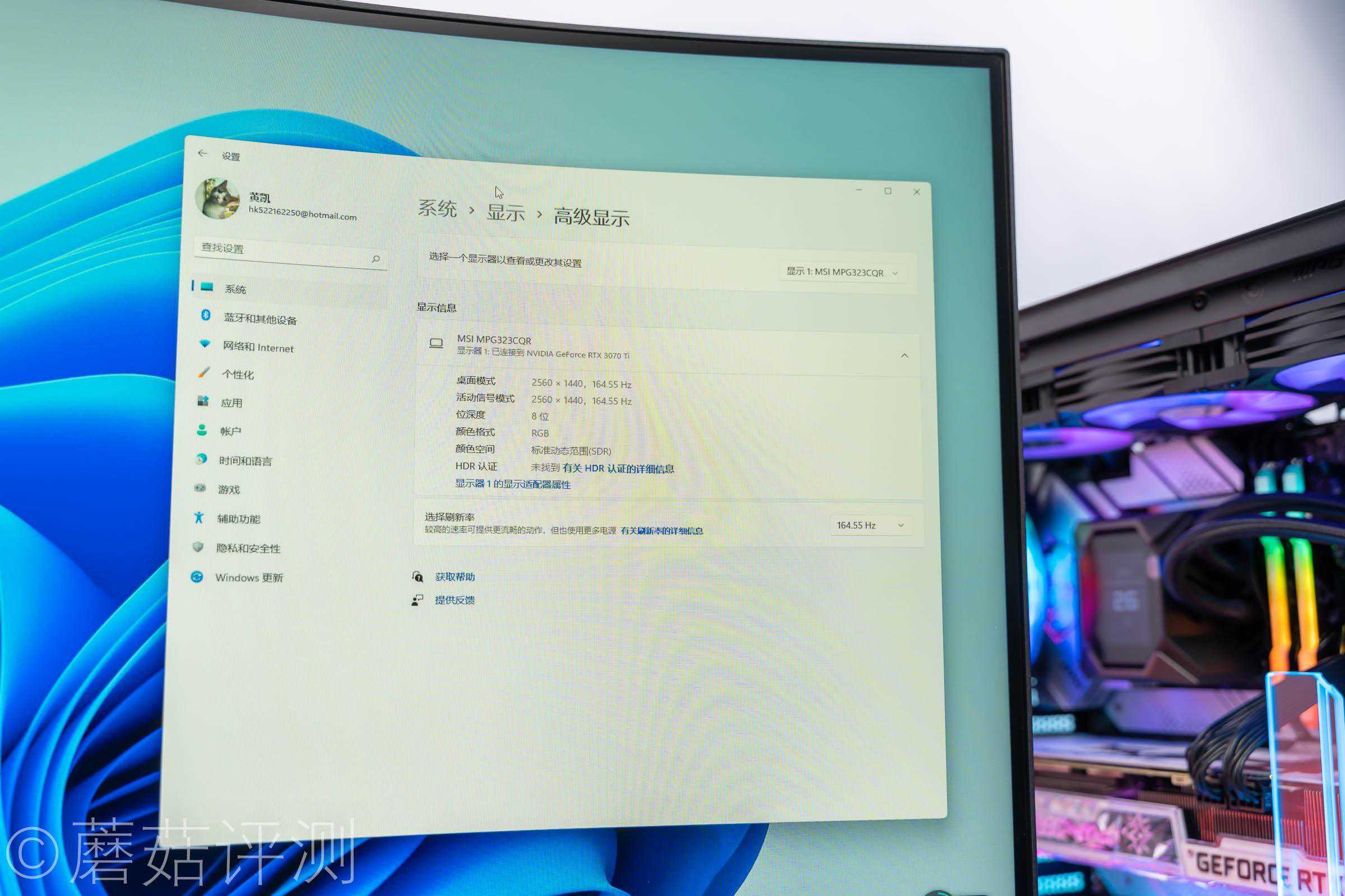 ▼显示器的分辨率2K,刷新率165Hz。