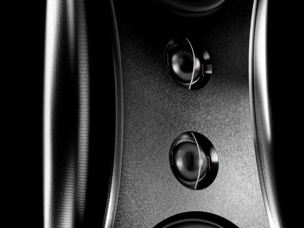 两个中音单元和两个软球顶高音单元的集合形成了坚固的数控加工的铝质中体结构,铝材的特性及其特殊处理的圆边设计确保了声频的均匀性且不渲染,完全透彻且轻松地再现了最高频率,提供了优美、精细且精确的音乐体验。中性的钛制金属棒对高音单元中设计精巧的软球顶具有一定的保护作用。