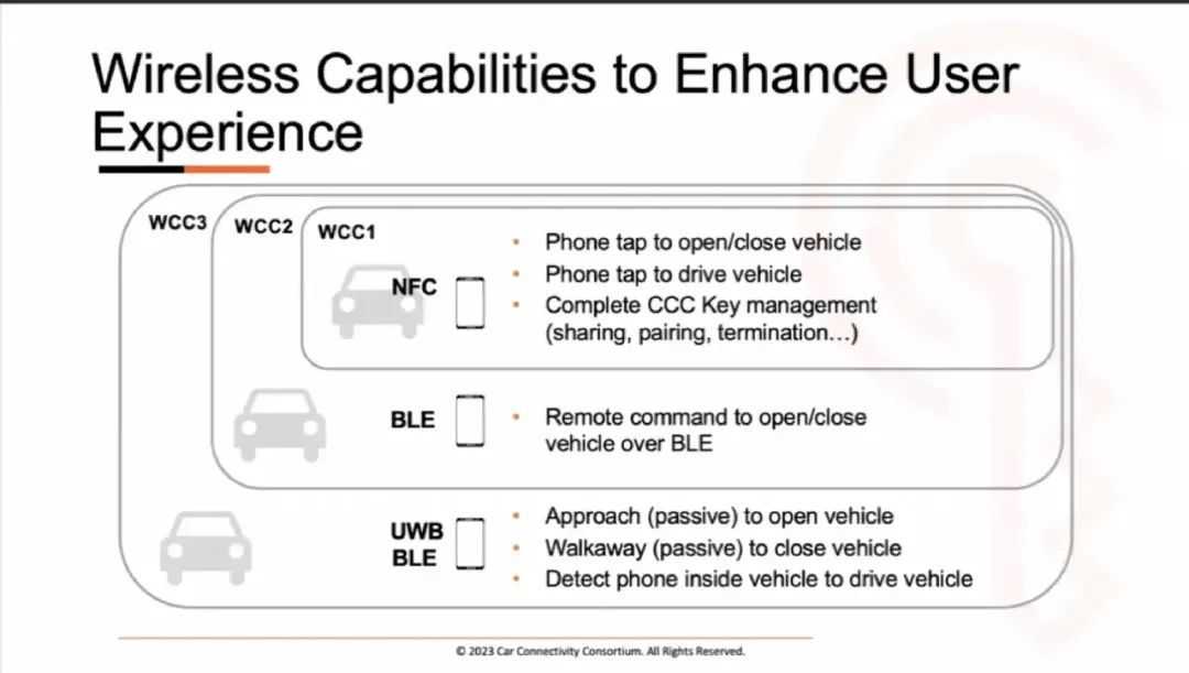 早在2021年,CarConnectivityConsortium(CCC联盟)就正式发布了规范,其中明确提出将UWB与BLE(蓝牙)无线技术相结合,能够实现通过兼容的移动设备实现无钥匙进入和引擎启动。