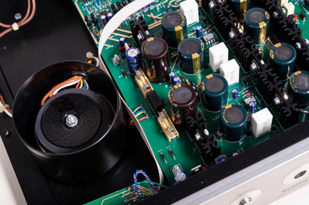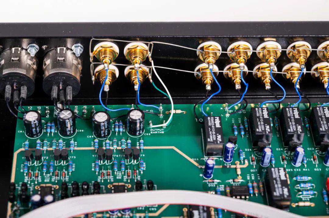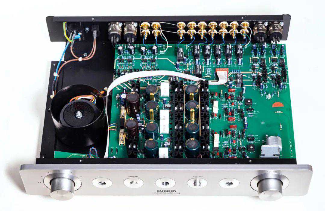 别看MasterclassLA-4的机箱小巧,其实它的线路设计是比较复杂且所用的元件也较多,但内部的线路结构却被安排得有条不紊,且为双单声道设计,金属罩独立屏蔽的环牛供电,线路板的信号通道镀以厚的纯银,使信号的传输失真减到极低的水平。因此MasterclassLA-4的频宽达到了惊人的6Hz-300kHz,而失真度还非常低,1kHz时0.006%,得益于Sugden优秀的电源与屏蔽设计,Sugden对“变压器”的使用比其他厂家都擅长,因此能设计出指标如此优秀的A类前级放大器。