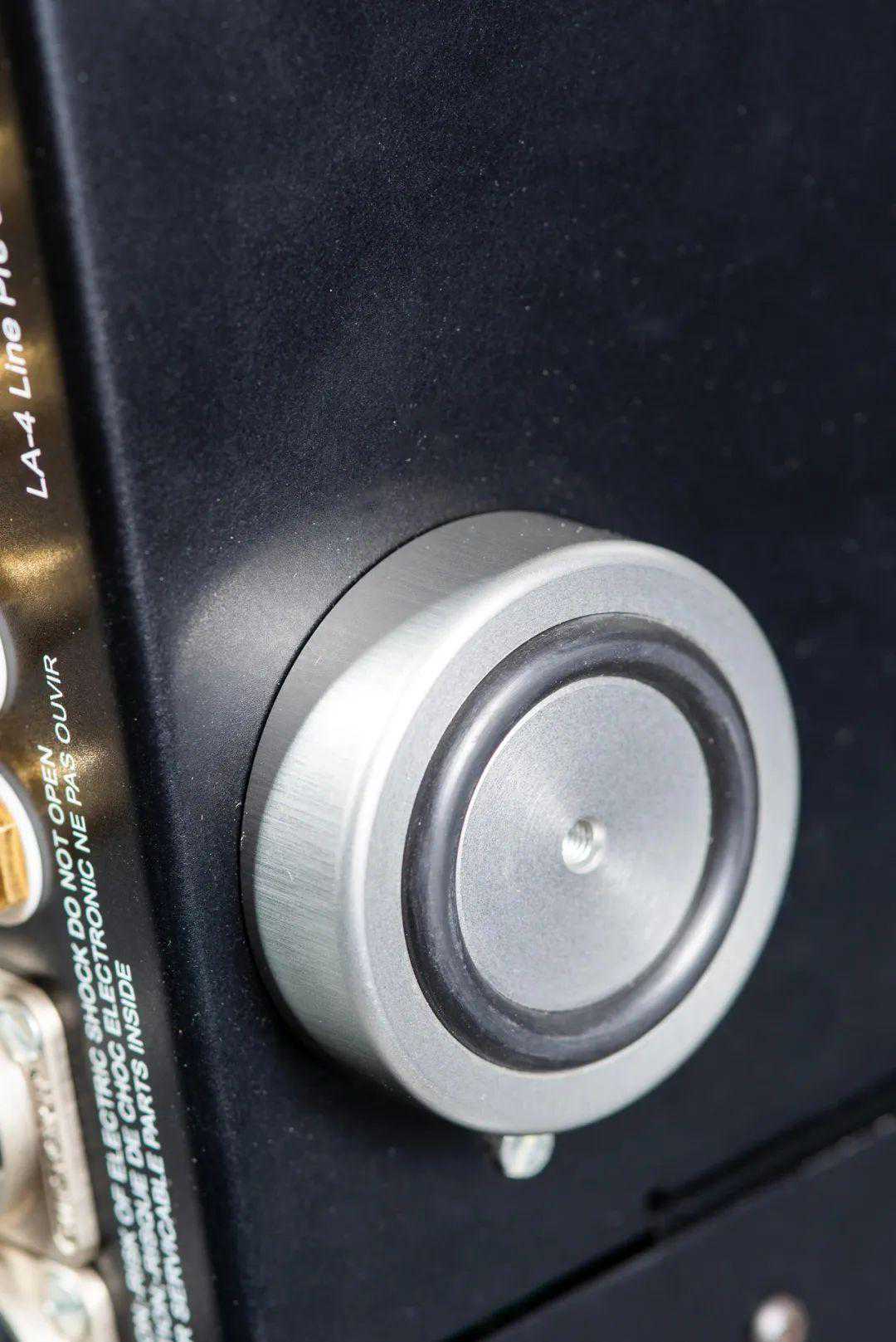 LA-4上左边大旋钮是音源输入通道切换,它是通过继电器完成的,切换的时候有档位感,一阶一阶的,这种继电器的声音是比较透明无染的,所以LA-4前级它的声音带着甲类功放的温暖柔和,同时又很通透,空气感非常好。而右边大旋钮音量旋钮阻尼正好,LA-4的增益很高,一般大音量的时候很难精准控制,幸好音量调节旋钮手感奶油一般的顺滑,又带点粘滞的阻力,即使没有音量提示,不要用力过猛也不会一不小心扭过头了,有点像我的徕卡M系列镜头对焦环的阻力,非常舒服,有非常良好的控制感。