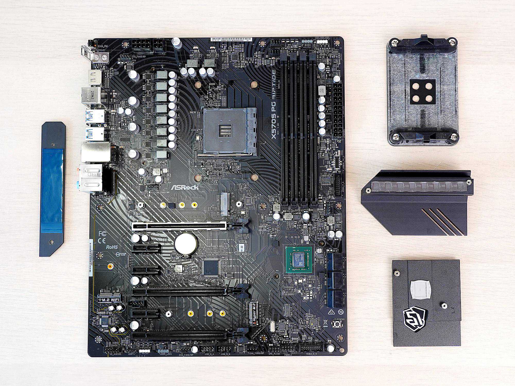 X570S是X570芯片组的改良版,小修小补后芯片组功耗降下来了,也就取消了PCH上的风扇散热配置。小熊找个一款华擎的X570S主板,现在还未上市,给大家先解解馋!主板型号是PGRiptide,可能是从PhantomGaming系列衍生出来的一个新的系列,定位算是中端主流吧,全黑配色,也有一些电竞元素,CPU的供电接口采用了8+4Pin的设计,性价比应该会不错。