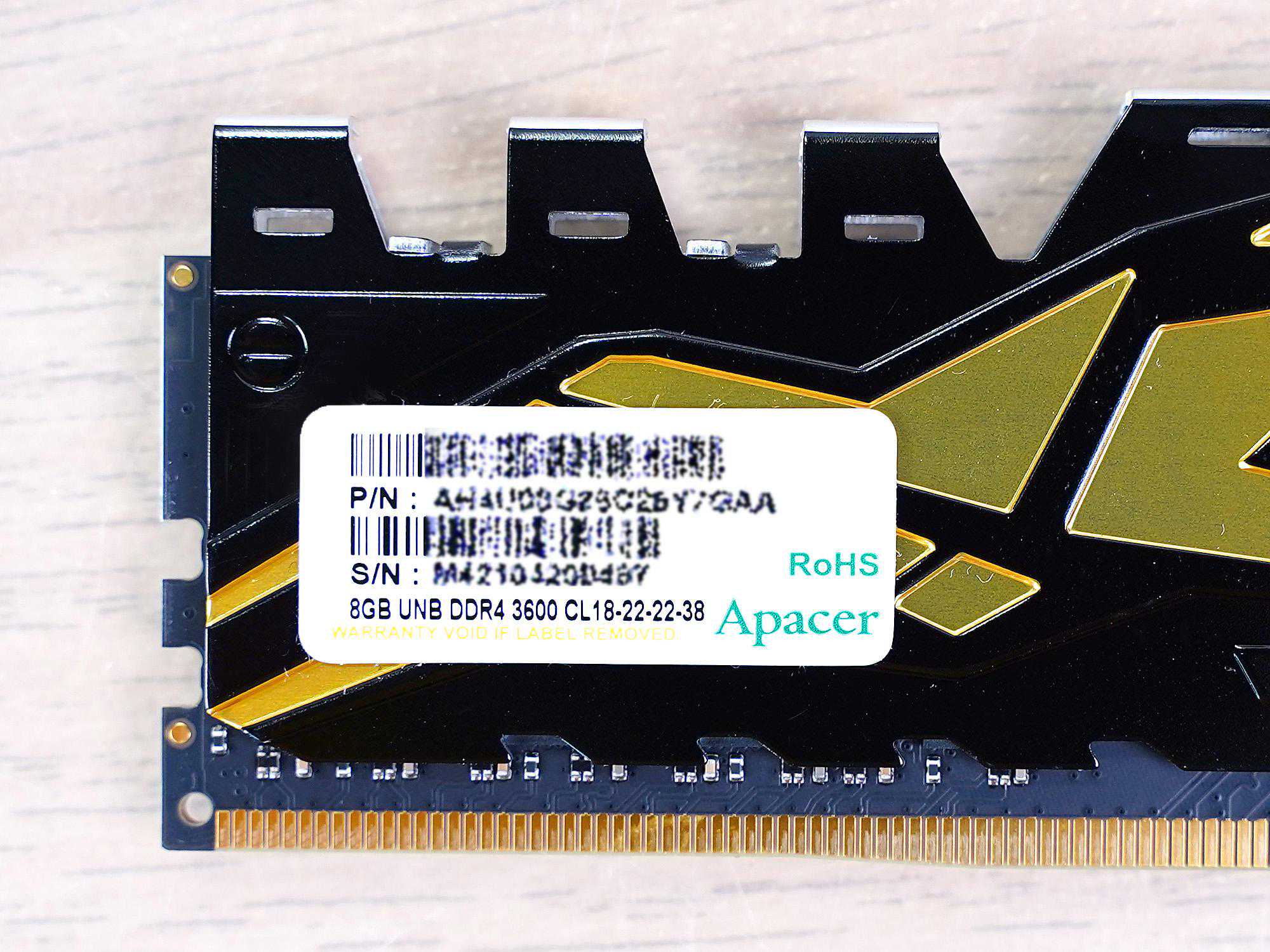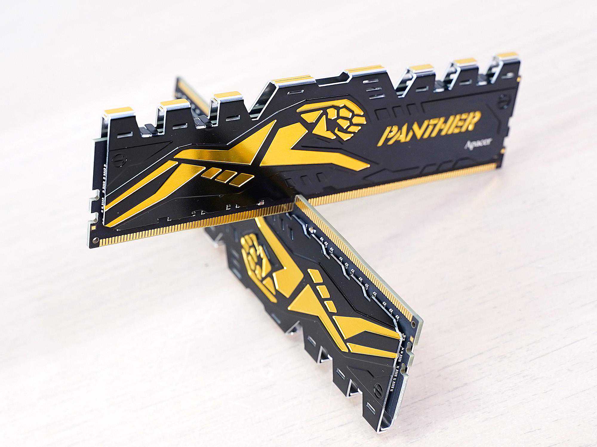 内存马甲上有精密冲压成型的金色小豹子和PANTHER的标识,另外还有Apacer的LOGO。
