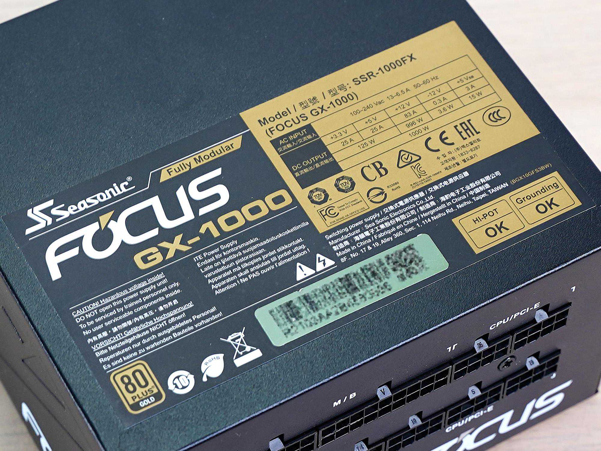 FOCUSGX电源为80PLUS金牌标准认证,实际最高效率达到了92%,单路12V输出电流83A,功率996瓦,基本占满了1000w的额定功率。