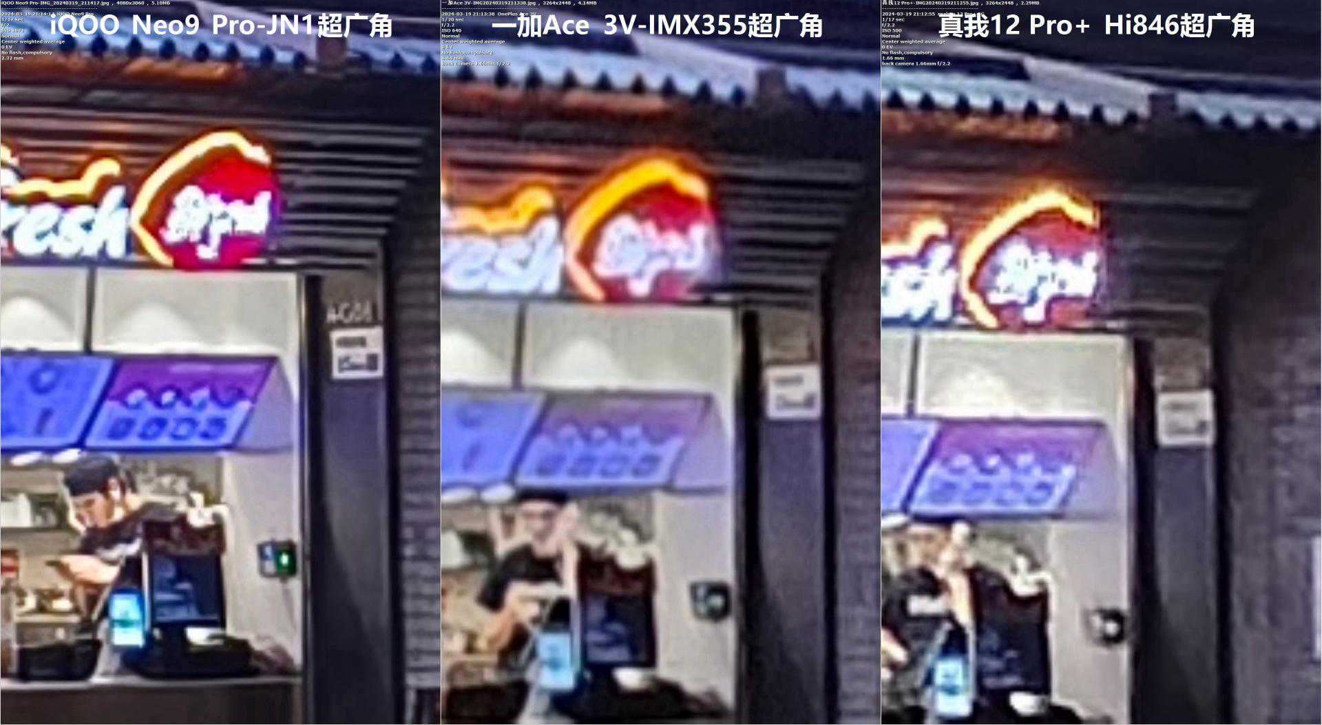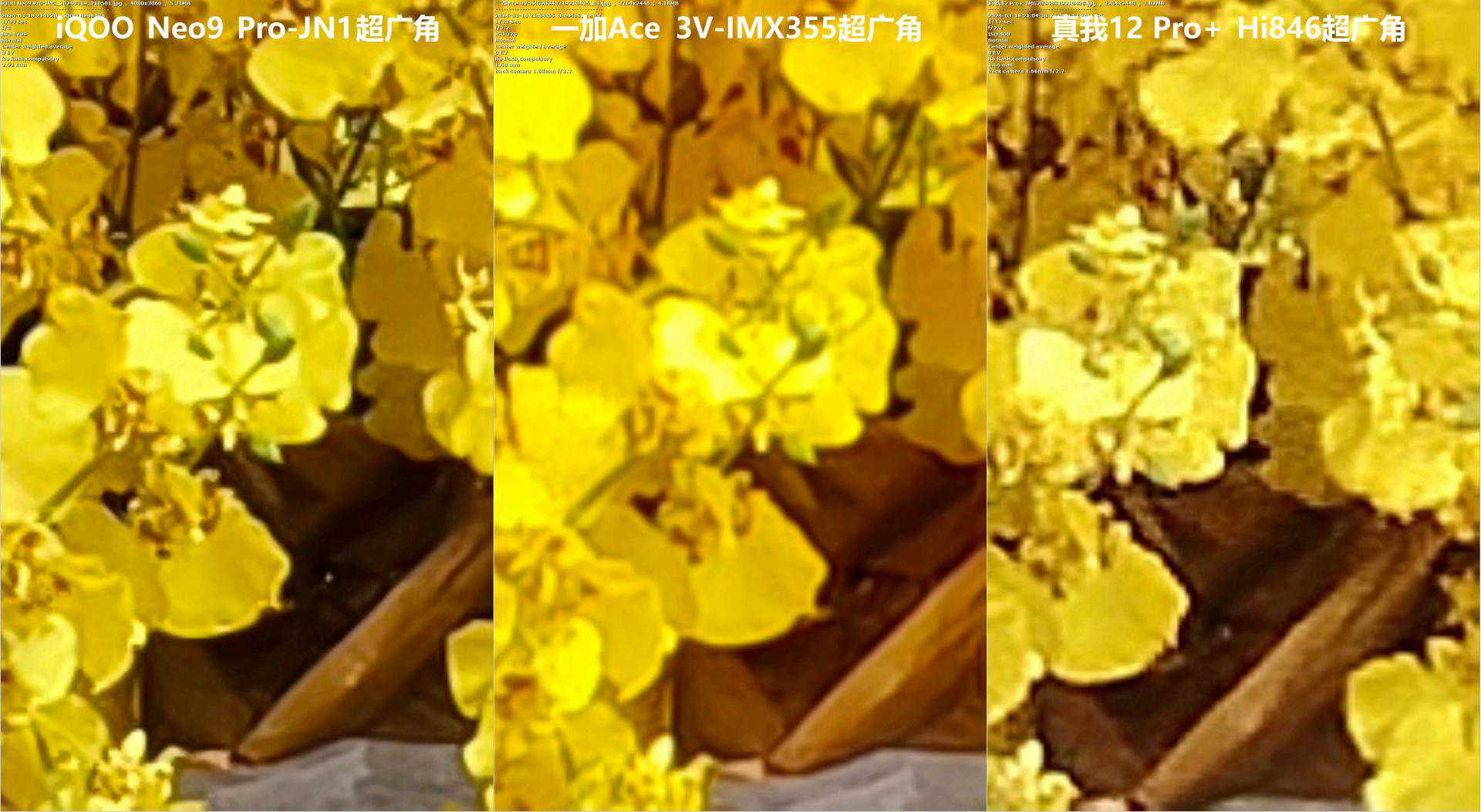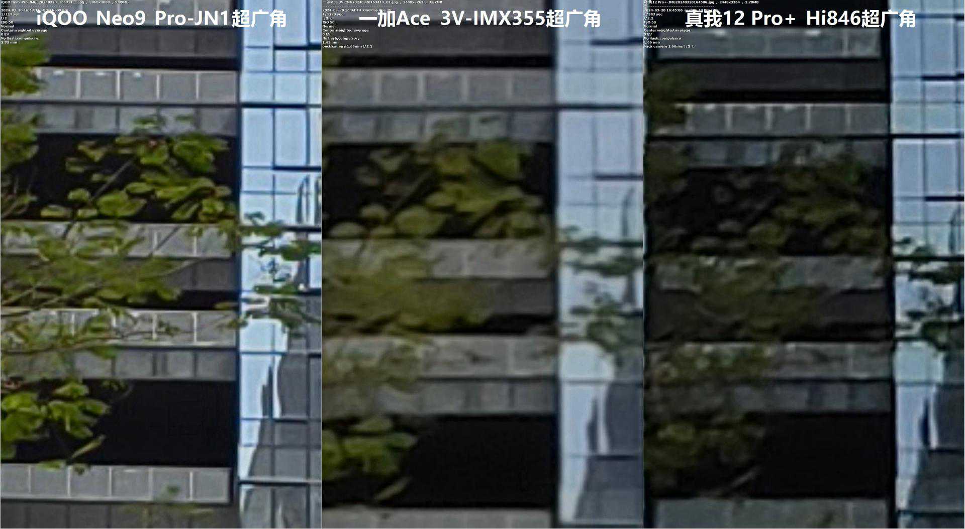 一加Ace3V用小一点的视角作为代价,换来打赢真我12Pro+那颗IMX890的细节效果(“2倍变焦”时除外)。从超广角看,一加的算法也要比稍强一点。