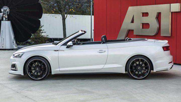 这样可以更容易地看清下巴扰流板,侧裙和后扩散器。值得庆幸的是,ABT并没有改变格栅或大部分保险杠,这些都是昂贵的奥迪部件,不需要干预。但是要小心停放它,因为轿跑车的下侧现在比以往更容易损伤,特别是在降低弹簧模块安装到汽车上之后。虽然RS5采用了双涡轮增压2.9升V6发动机,但S5却采用了单涡轮增压3.0升发动机。当然,如果没有RS版的敞篷车或Sportback,你可以将它送到ABT并将你的354匹马力提升到425,相当于提升20%。