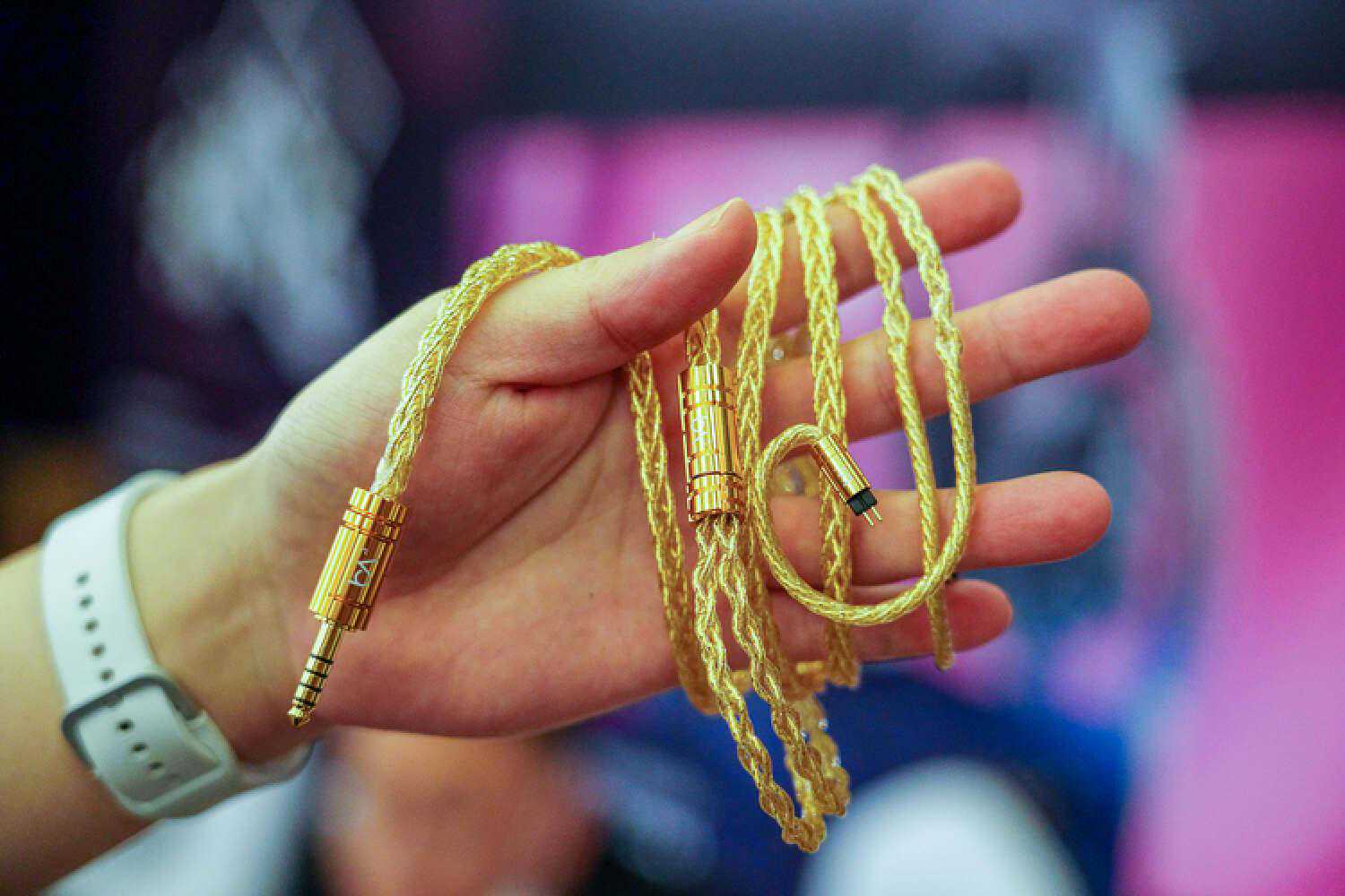 万隆这次带来了一个新的超旗舰线材,记得没错应该是单晶银和金银合金材料,就是图中这个没有接插件的工程样线,是我目前心目中耳塞线素质的T0了,除了低频不算很出彩以外,信息量、结像、空间感、透明度、以及非常华丽但控制力很好的高频延展度,搭配VKRP这种本身高频很出彩的塞子并没有起到适得其反的效果,而是锦上添花的那种好听,而且它目前在高频信息量的表达方面在耳塞线里暂时是独一档,售价应该会在2W+。