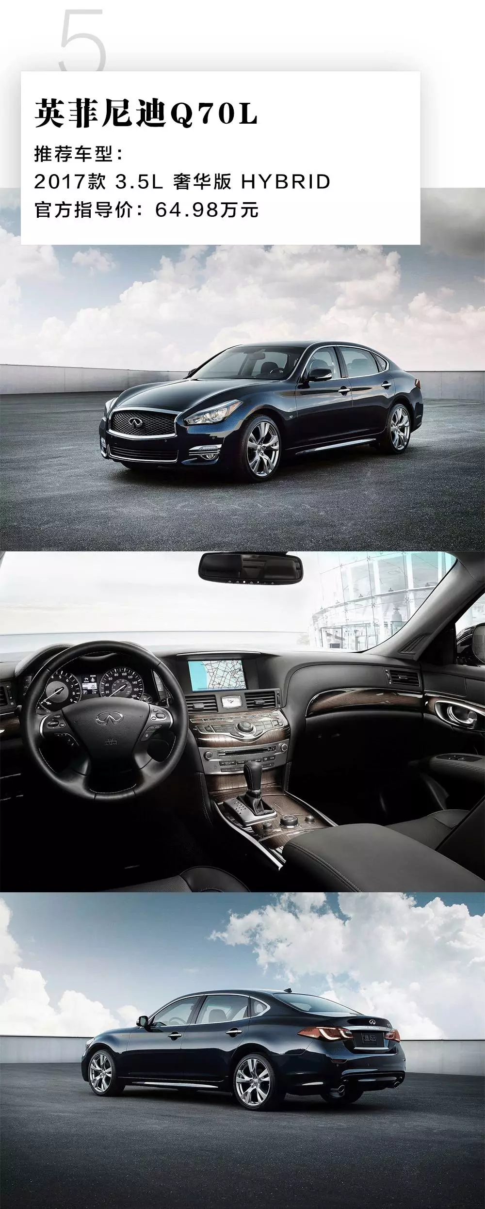 和雷克萨斯GS300h一样,这款同样来自日本的英菲尼迪Q70L也采用了混合动力系统它以日产引以为傲的VQ35发动机为基础,配合电动机以及7挡手自一体变速結,带来舒适的驾驶感受。
