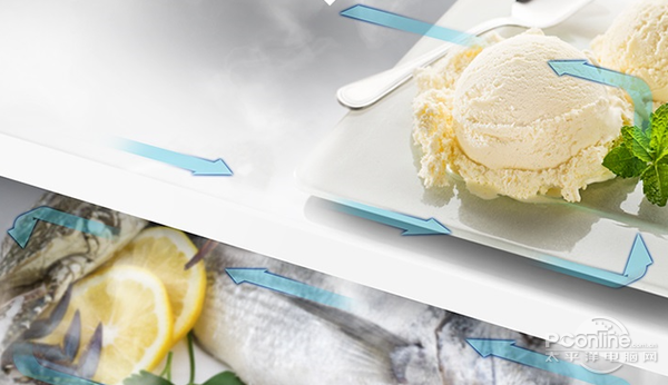 蓝色优雅的LED内线,确保舒适悦目的同时,使显示读取更为清晰,令操作更为便捷。冰箱采用风冷无霜技术,提高温度均匀性和制冷温度,更好呵护食物,避免凝霜给水,解除手动除霜的烦恼。