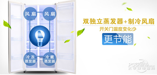 冷藏室独立蒸发器可保持冷藏食物鲜度更佳,冷冻室独立蒸发器冷冻功效更强,15KG强大冷动力,快速实现冷冻。在压缩机方面,冰箱采用松下变频压缩机,省电、高效、静音。此外,LED液晶显示操作面板,简约暗藏门把设计,独立制冰盒等都是不错的设计。
