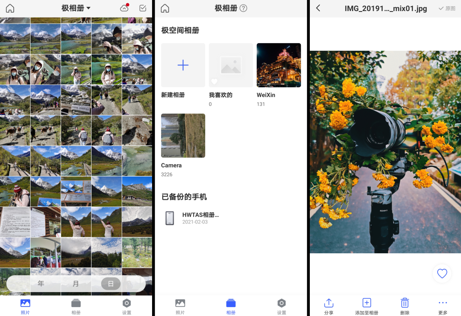 7、极空间的极相册功能,备份照片的速度非常的快: