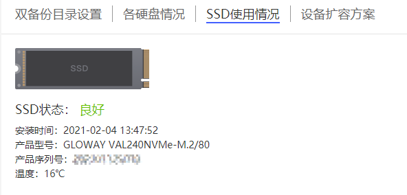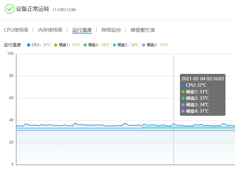 日常运行中,温度也比较低,只有30°左右,我的另外一台NAS,温度都有40°了。
