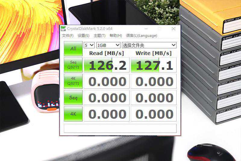 换用DiskMark测试参考,同样是读写均超过126MB/s(1GB)。
