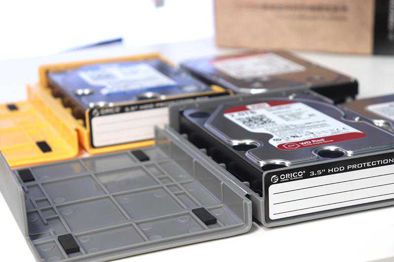 细心的朋友,应该注意到我拍硬盘柜时,旁边有还这么一摞子灰色小盒子、其中一个是黄色的。这7个就是ORICO的独立硬盘收纳盒,1年前我拥有1个灰色、1个黄色,如今这款DS500C3赠送5个灰色,所以今后再买硬盘,不安置到硬盘柜里也有安全的收纳盒了。