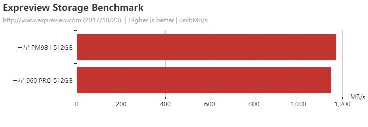 PCMark8的存储测试三星PM981512GB的得分为5075,而960PRO512GB的得分为5089,用MLC的960PRO还是技高一筹,不过两者确实差不了多少。