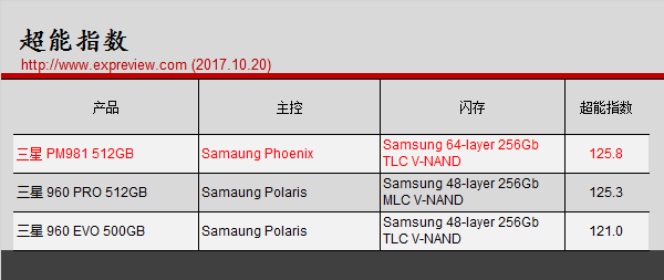 PM981之所以这么强,它海量的SLCCache绝对是其中一个重要因素,不过960EVO500GB也有22GB的SLCCache,不过速度就没那么快了,所以PM981上那块新的Phoenix主控和最新的64层堆叠3DV-NAND也是性能提升的原因之一。