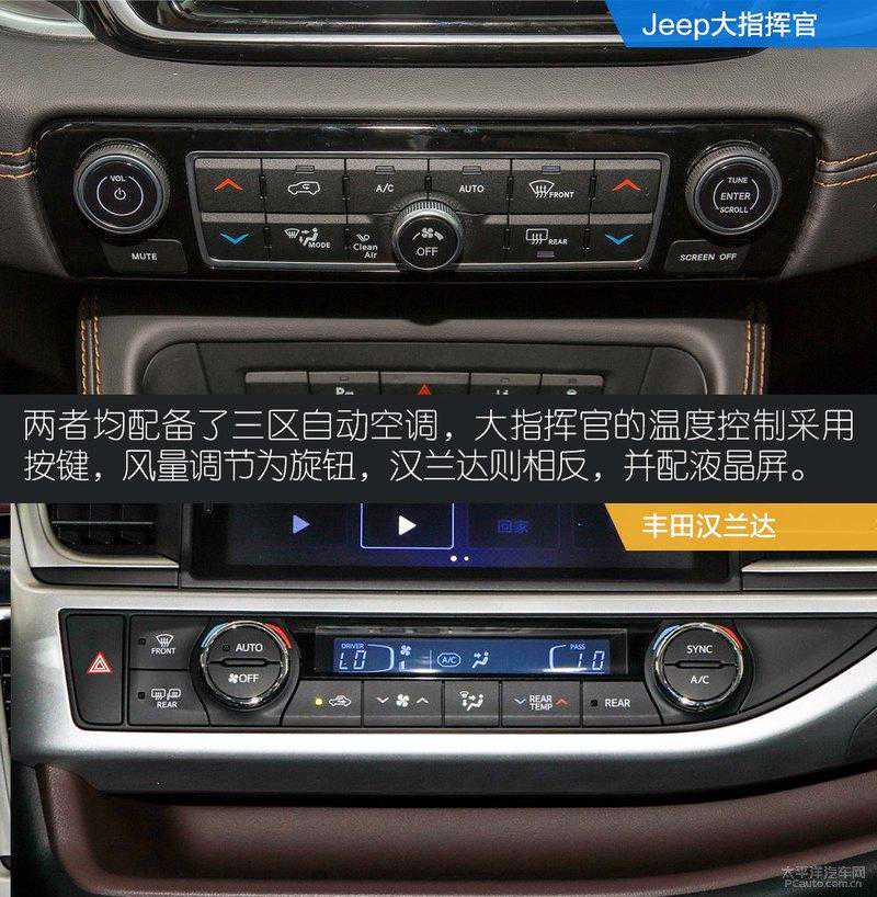 大指挥官和汉兰达内饰配置对比●标配○选配-无