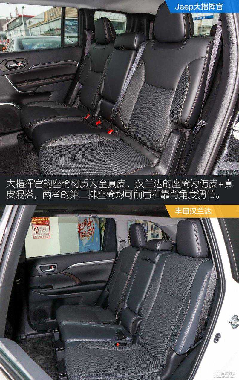 内饰小结:大指挥官的内饰质感和豪华感要更强一些,各处细节都能发现大指挥官的“料”很足,第二排位置的配置也比较到位,配备了座椅加热和220V家用电源接口等。汉兰达则更注重车内舒适的氛围,它并没有用很好的材质,也没有装备很多功能,但储物格用起来顺手,座椅让你感觉到舒适。