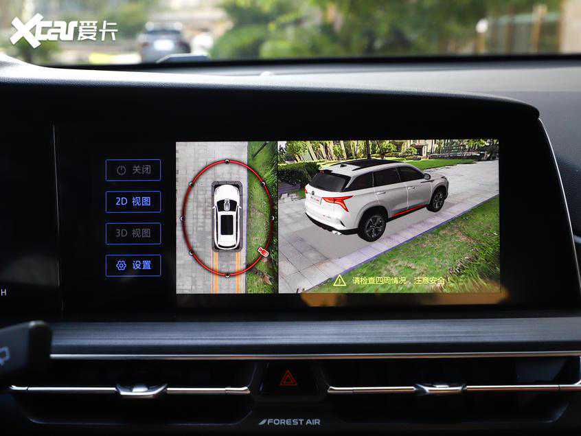 CS75PLUS配备了全景影像功能,可通过屏幕左侧的选项进行选择切换。除了常规的全景影像功能外,还带有3D显示功能,视觉效果更直观。