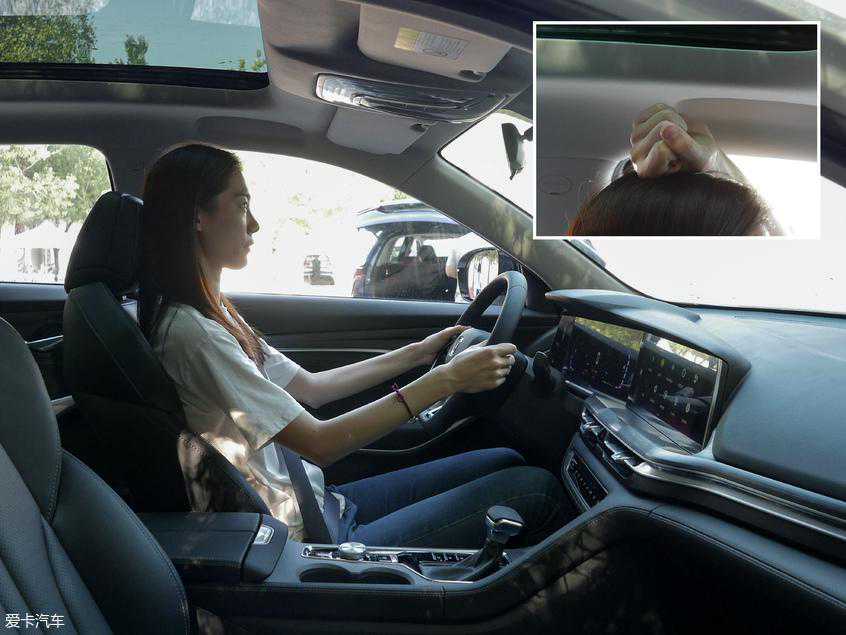 乘坐空间方面,身高176cm的体验者坐进前排,将座椅调至最低并调整好坐姿,此时头部有一拳多的余量。