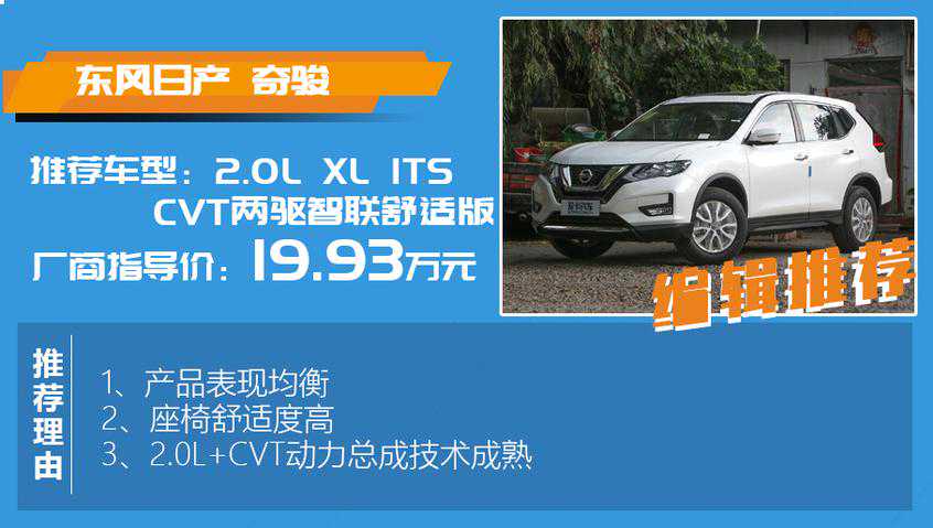 车型小结:奇骏作为东风日产的当家SUV产品,同样有着不错的用户基础,虽然多年来没有进行过换代,但是产品力依旧,并且针对国人用车需求增加了7座产品。奇骏的动力系统只能说是够用,不过舒适性和经济性才是它的专长。高配车型还配备了四驱系统,更多兼顾多用途性。