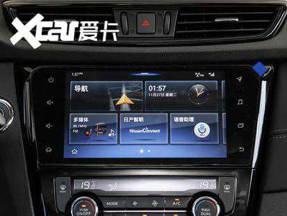 内饰部分,奇骏以黑色为主,造型更多的是强调家居风格,平底的三辐方向盘为车内增添了一些运动感。中控台上配备了9英寸多媒体显示屏,并且两侧的实体按键也被触控键替代,很有科技感。